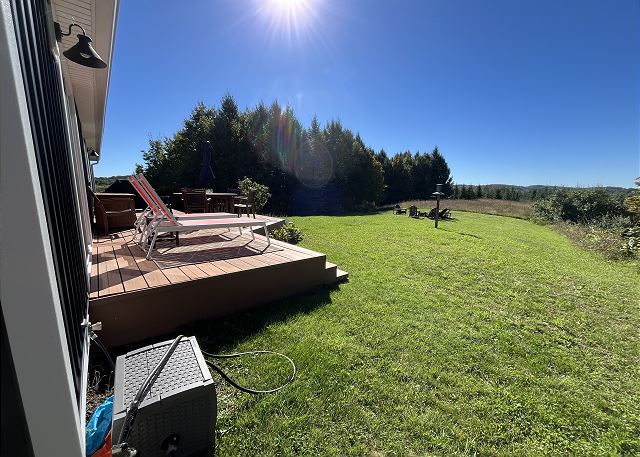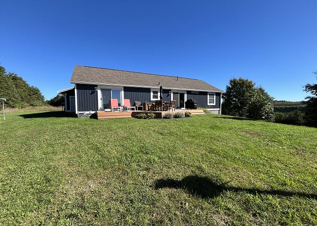 3+ private acres, deck, outdoor chairs, gas grill, fire pit, corn hole.