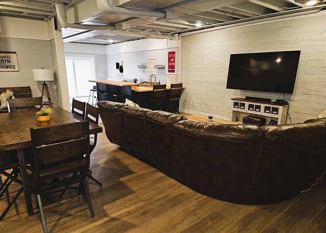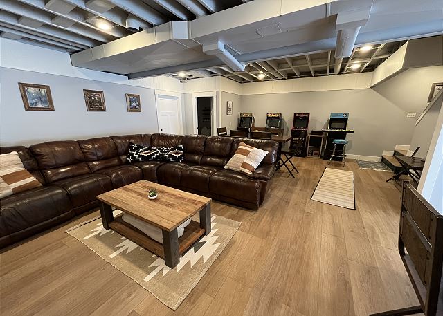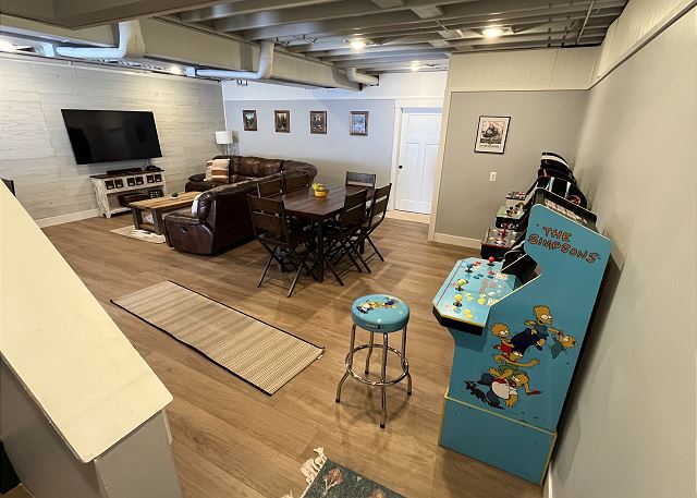 One of the highlights of this property is the finished walkout basement, complete with a bar, large-screen TV, and a fun video game area. Whether you're enjoying drinks with friends or having some friendly competition, this space is sure to become everyone’s favorite spot during your stay!