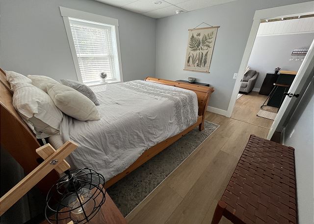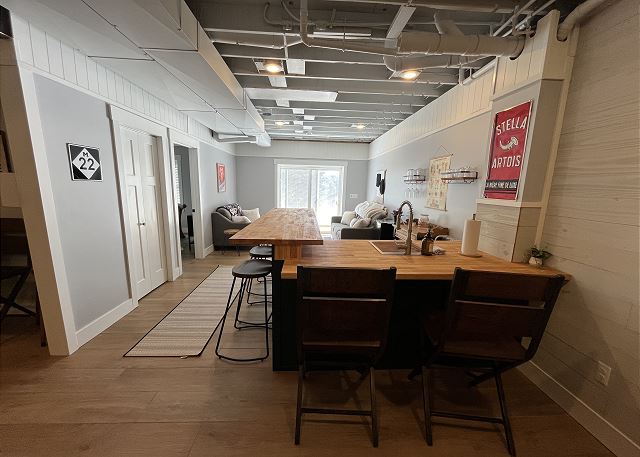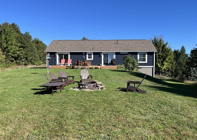Outside, there's a cozy firepit where you can gather around and roast marshmallows under the starry sky. When you're ready to explore, you'll find plenty of options nearby—wineries, restaurants, beaches, Fishtown in Leland, and the breathtaking Sleeping Bear Dunes are all just a short drive away. Popular places like Hop Lot Brewery, Tandem Ciders, Blustone Winery, and 9 Bean Rows Bakery are all within five minutes or less!
