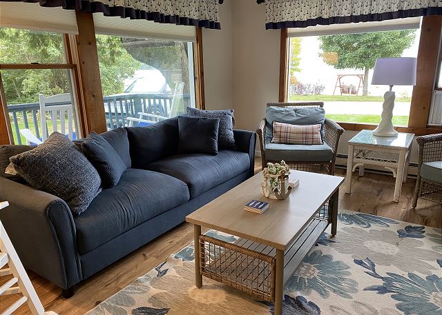 A delightful location in the historic Village of Omena, Lavender Lane is a 4-bedroom, 2-bathroom home that welcomes up to eight guests. It is immediately across the street from 140’ of beautiful private beach. Offering comfortable lodging and room to spread out, the cozy living room overlooks Omena Bay. Cable TV and Wi-Fi are provided. The kitchen is spacious and nicely appointed with all updated appliances, including a dishwasher. There is also a washer and dryer.