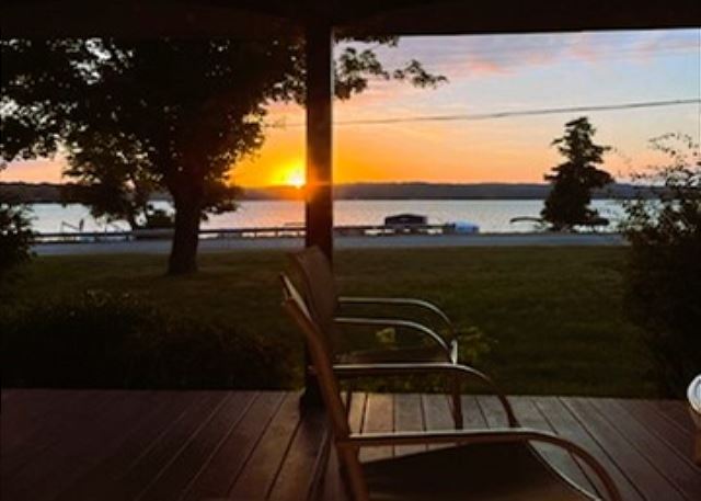 Enjoy your mornings on the large front porch, where you can sip coffee and watch the sunrise over the lake - or wind down in the evening with a glass of wine as the day fades.